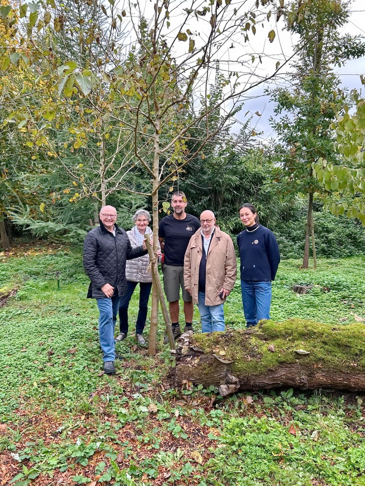 Begleitet wurde Naho Matsuda dabei vom Ehrenvorsitzenden der Krefelder Zoofreunde, Friedrich R. Berlemann, der Koordinatorin für Baumfreundschaften der Krefelder Zoofreunde, Marlies Niepmann, dem Leiter der Zoogärtnerei, Jörg Kieselstein, und dem Koordinator der Initiative „3333 Bäume für Krefeld“, Peter Könen. Sie informierten die Künstlerin über die Geschichte der Bäume und ihre Pflege im zoologischen Umfeld.