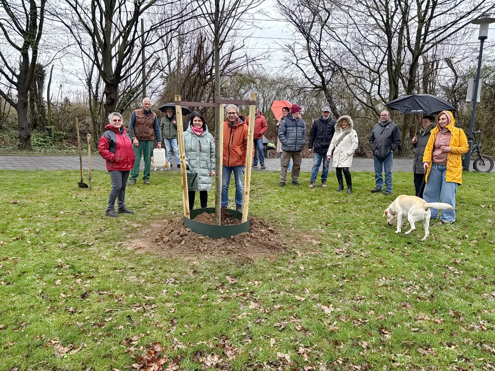 Unser Dank gilt auch der Baumschule Büssem-Indenklef, die den Baum beschafft und durch Inhaber Peter Büssem und seine fleißigen Helfer sach- und fachgerecht ins Erdreich gesetzt hat. Vorbereitende Arbeiten haben dankenswerterweise die Teams von Klaus Speck vom Kommunalbetrieb Krefeld und Louis Schröder vom Fachbereich Umwelt und Verbraucherschutz der Stadt Krefeld erbracht, die ich in meinen Dank ausdrücklich einschließe.
